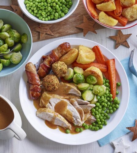 Κοτόπουλο φούρνου με πατάτες, λαχανικά και ζουμερή σάλτσα